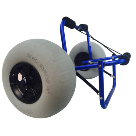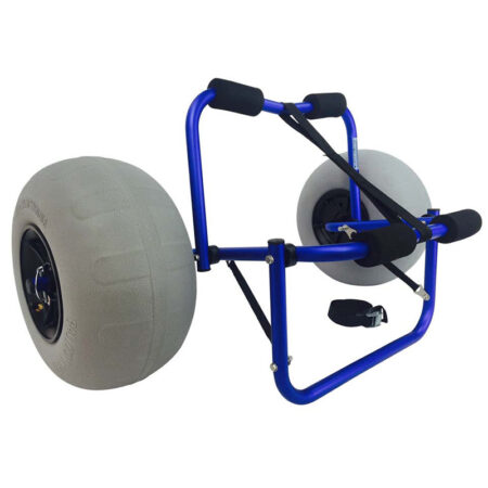 Il carrello Lazy-Boys è il compagno ideale per le avventure con il tuo kayak. Il robusto disegno del telaio supporta pesi fino a 90Kg e la sua esclusiva colorazione azzurro metallizzato spicca nella massa dei carrelli di questo genere.