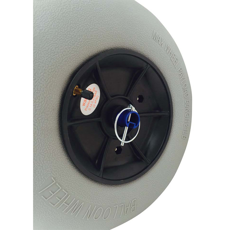 Le ruote sferiche del carello Lazy-Boys sono realizzate in materiale resistente e duraturo e sopportano un carico massimo di 55Kg cada una. Sono disegnate per per essere gonfiate ad una pressione di 0.14-0.27 BAR (2-4 PSI) per la miglior resa. Il telaio del carrello è realizzato in alluminio galvanizzato azzurro metallizato, che lo rende leggero, oltre che molto attrattivo.