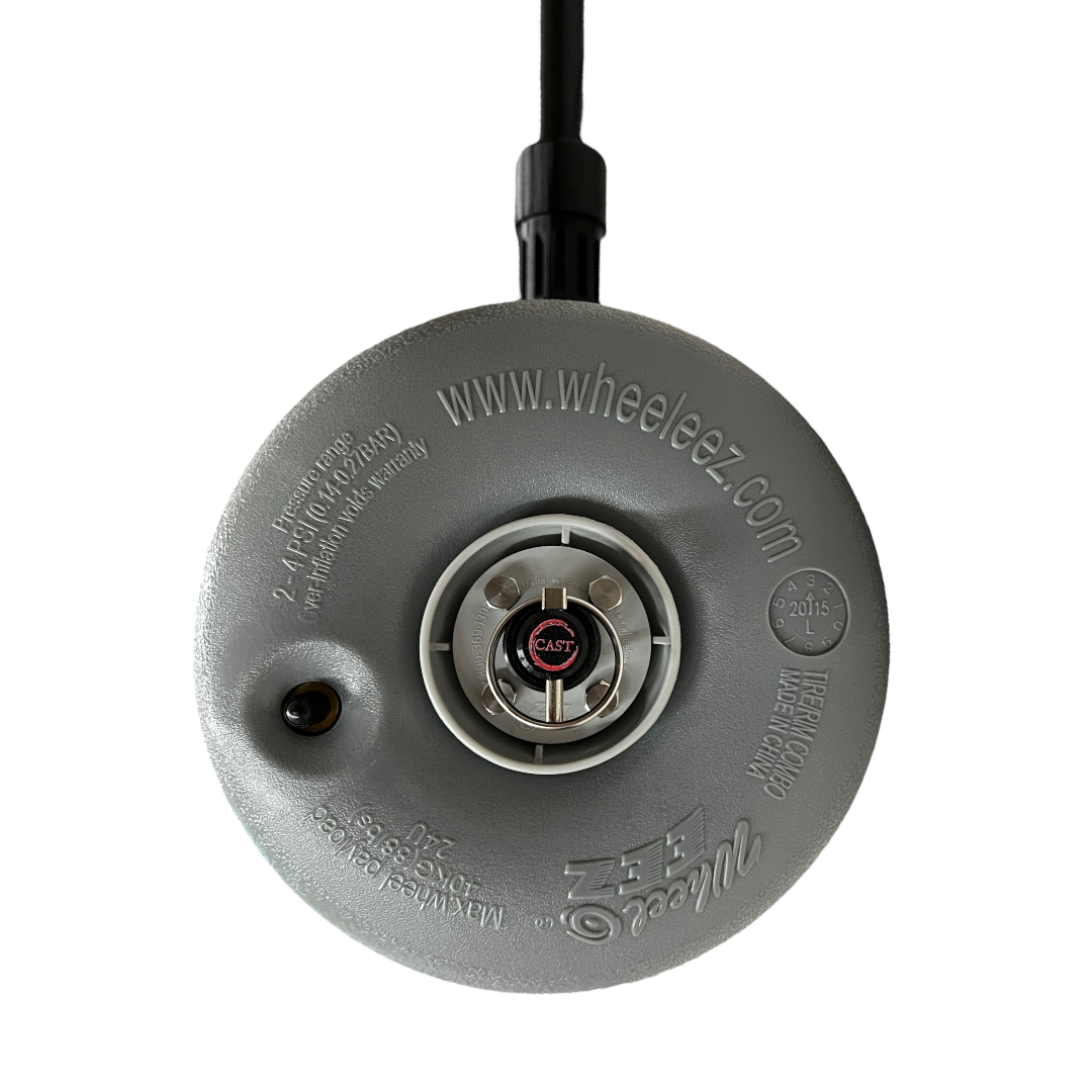 Carrello alaggio costruito con telaio in acciaio inox, molto robusto e ruote baloon da 24 cm Wheeleez, le migliori sul mercato!