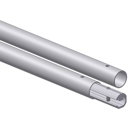 Tubo in alluminio completo di spina per renderlo divisibile, lunghezza 2380×50 mm. Usato come asse centrale per carrello big foot.