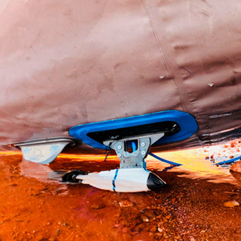 Per i gommoni che non dispongono di una scatola/piastra per le pinne, è possibile incollare la piastra per pinne flessibile in dotazione sul fondo dell’imbarcazione utilizzando una colla adesiva per PVC o uretano. Utilizzando poi l’adattatore Slide & Lock in dotazione, sarà possibile far scorrere facilmente il motore Bixpy sul box pinne appena installato.
