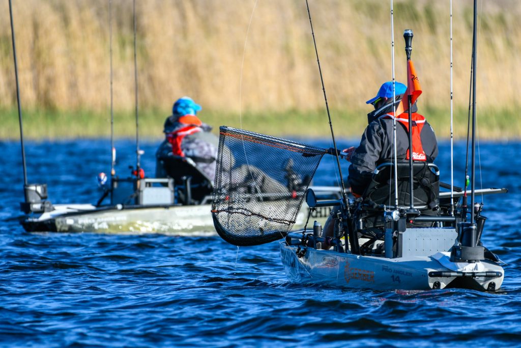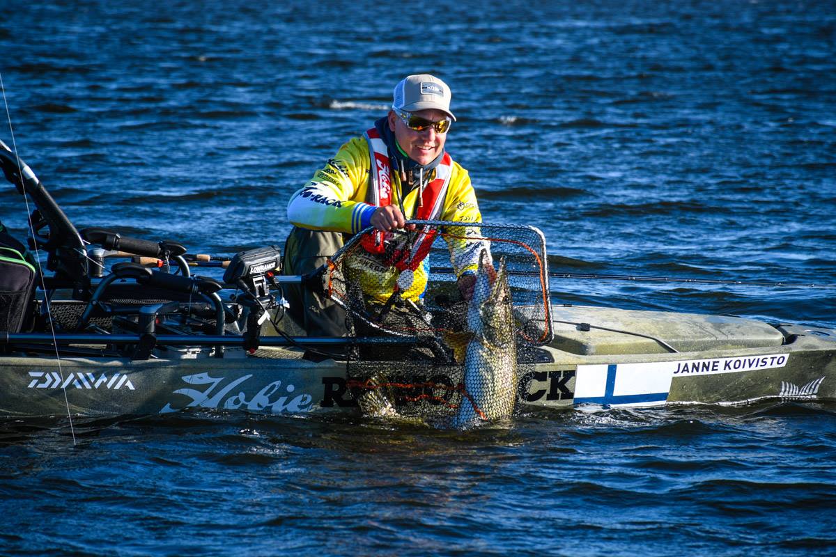 Siamo entrati nel vivo con la prima giornata di gare al mondiale Hobie Fishing ad Amal sul lago Vanerm in Svezia. Ore 7 del mattino segnale di partenza dopo l’inno nazionale svedese e con il nuovissimo Hobie Pro Angler 14. Temperatura dell’aria fresca e vento da nord-est sui 7/8 nodi. Temperature che nel corso della mattinata sono salite fino a raggiungere condizioni più miti e confortevoli, per arrivare al pomeriggio in totale assenza di vento. Condizioni per la prima giornata perfette.