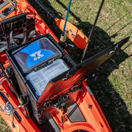 da raggiungere dalla posizione di seduta alta della maggior parte dei kayak da pesca moderni. Avere la possibilità di creare spazio aggiuntivo