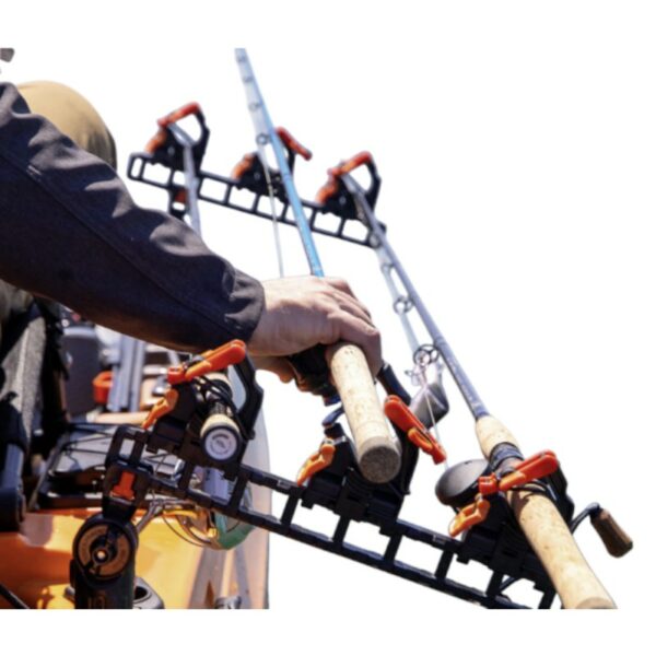 Una novità nell’arsenale YakAttack per il 2024 è il SideStage. SideStage è la nostra interpretazione di un sistema di livellamento orizzontale per aste, ma con tutta l’innovazione e la possibilità di regolazione che ci si aspetta da YakAttack. Questo sistema è venduto in coppia e include tutto il necessario per livellare e fissare fino a tre aste. Introduce un nuovissimo sistema di fissaggio chiamato ClickTrac. Il sistema a binario ClickTrac consente di agganciare, regolare e rimuovere facilmente gli accessori con la semplice pressione di un pulsante. Per chi utilizza un motore a prua o un sistema a pedali sul proprio kayak, i sistemi di livellamento orizzontali laterali come SideStage potrebbero essere un’ottima opzione per avere tre aste a portata di mano e facilmente accessibili.