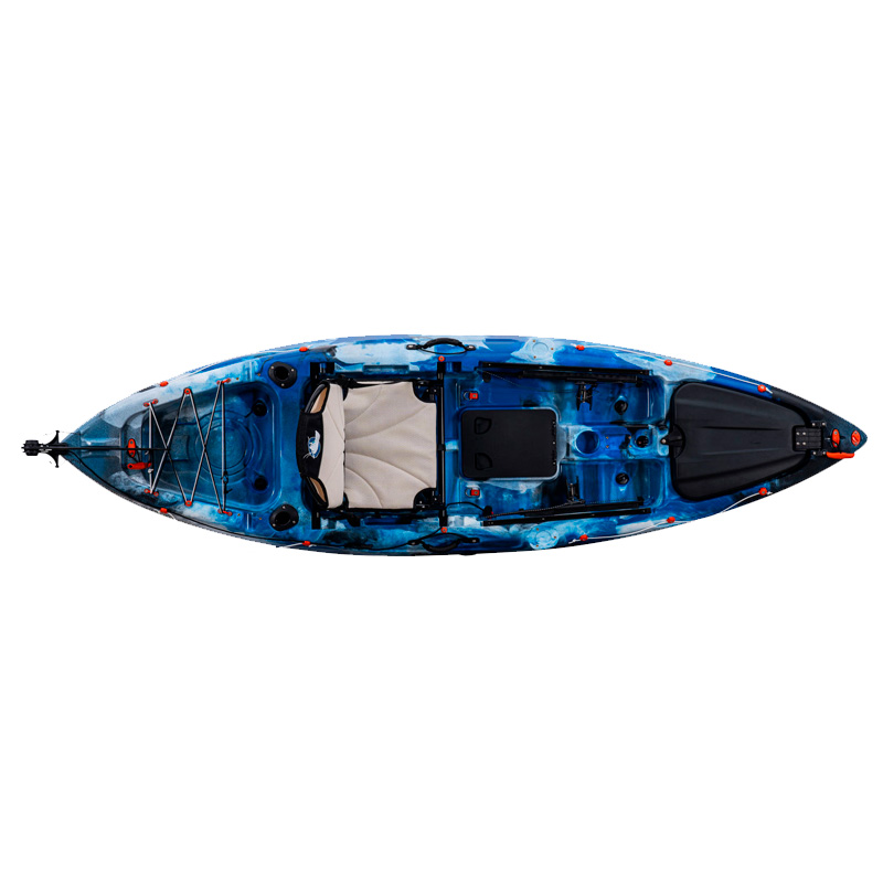 Con un fondo piatto appositamente progettato e bordi angolati, questo kayak massimizza la stabilità e consente una guida fluida e facile. La sua chiglia anteriore affilata e la poppa a V forniscono una buona velocità di crociera e il suo nuovo sistema di timone e pedaliera consente una maggiore manovrabilità sull’acqua.