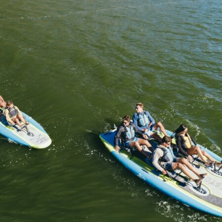 Il Mirage iTrek 9 Ultralight è il nostro kayak a pedali più leggero, veloce e manovrabile. Si ripone in una comoda borsa a rotelle / zaino che consente di riporlo in spazi più piccoli come un appartamento, un camper o una barca. Meglio ancora, controllalo su un aereo per la tua destinazione di viaggio preferita. Questo gonfiabile si trasforma in pochi minuti in una moto d’acqua comoda e manovrabile. Il kayak gonfiabile Mirage iTrek 9 Ultralight è progettato per aiutarti a raggiungere acque remote con il minimo sforzo. La sua costruzione a punto goccia diagonale si gonfia a 10PSI, offrendo la stessa robusta rigidità e prestazioni agili delle nostre altre piattaforme, ma in un pacchetto incredibilmente leggero. Dotato di MirageDrive GT con alette kick-up e controllo intuitivo del timone, iTrek 9 Ultralight può ruotare sul proprio asse e navigare con facilità in corsi d’acqua stretti. Il sedile rialzato regolabile è rivestito in tessuto nano-mesh traspirante, così rimani comodo e fresco, non importa quanto tempo sei in acqua. ITrek 9 Ultralight è veloce, agile e facilmente trasportabile, ma non ci siamo fermati qui. È anche versatile. Basta rimuovere MirageDrive e afferrare la pagaia SUP in tre pezzi e il tuo iTrek 9 è pronto per essere utilizzato come piattaforma in piedi. Lo abbiamo reso facile da usare e ancora più facile da trasportare. Viene fornito con una pompa manuale ad alta pressione, una pompa elettrica ad alto volume e una pagaia SUP in tre pezzi. La maniglia dello sterzo si monta sul lato sinistro o destro del sedile. Trasporta fino a 158,80 Kg.