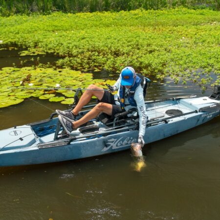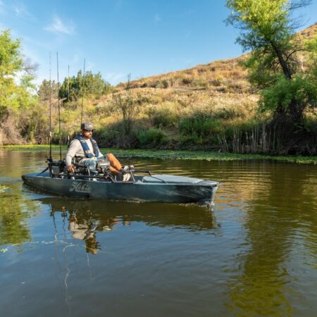 Tutto ciò che i pescatori cercano in un kayak da pesca: controllo totale, potenza, stabilità, prestazioni, comfort e funzionalità. La sua ampia e solida piattaforma permette di stare in piedi, il ponte è impreziosito da pannelli antiscivolo in EVA. Esplora ovunque tu voglia andare con le nuovissime pinne Kick-Up che si ritraggono automaticamente all’impatto. Sedile Vantage ST ultra comodo e regolabile, doppio timone, sistema portatrasduttore retrattile Guardian, tutto questo consente lunghe giornate in acqua.