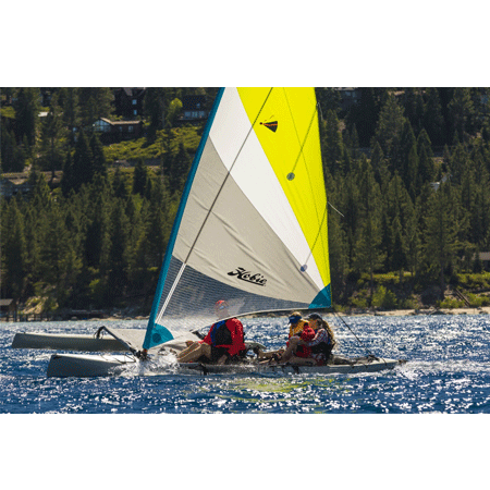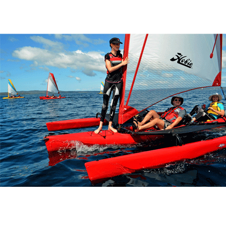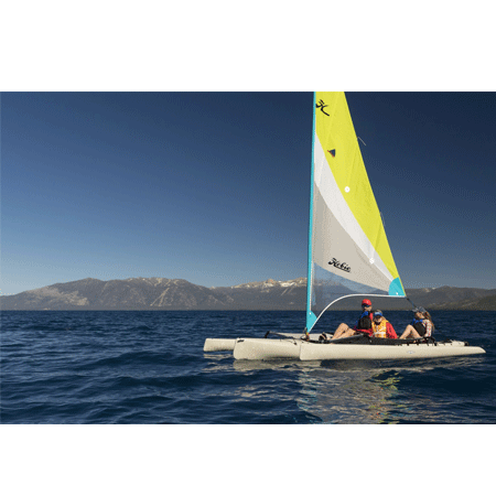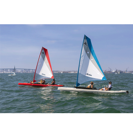 Entrambe le sedute sono dotate di timone e rinvio per regolare la vela, rendendo il Tandem Island governabile da entrambi o da soli.