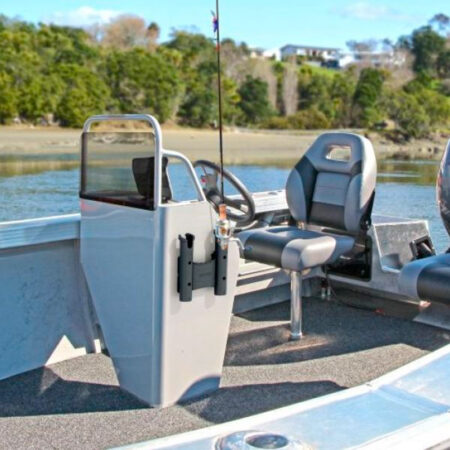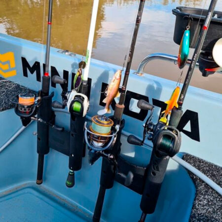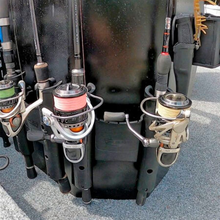 Il RodStow Double è disponibile in nero o bianco, viene fornito con elementi di fissaggio in acciaio inossidabile e può essere installato in pochi minuti. È dotato di un contenitore per esche, tracce e altre attrezzature, è anche abbastanza grande da contenere una piccola cassetta degli attrezzi. Questi portacanna hanno un perno cardanico rimovibile che puoi lasciare per sostenere l’asta e fermare la rotazione, o rimuovere per far passare l’asta.