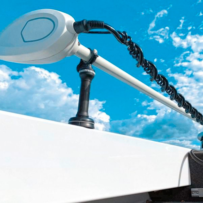 L’estensione fissa ti dà l’altezza corretta dal ponte e il G-Hold offre una tenuta salda per l’albero del motore per pesca alla traina. Altezza totale fuori coperta 160 mm (6,3 pollici)